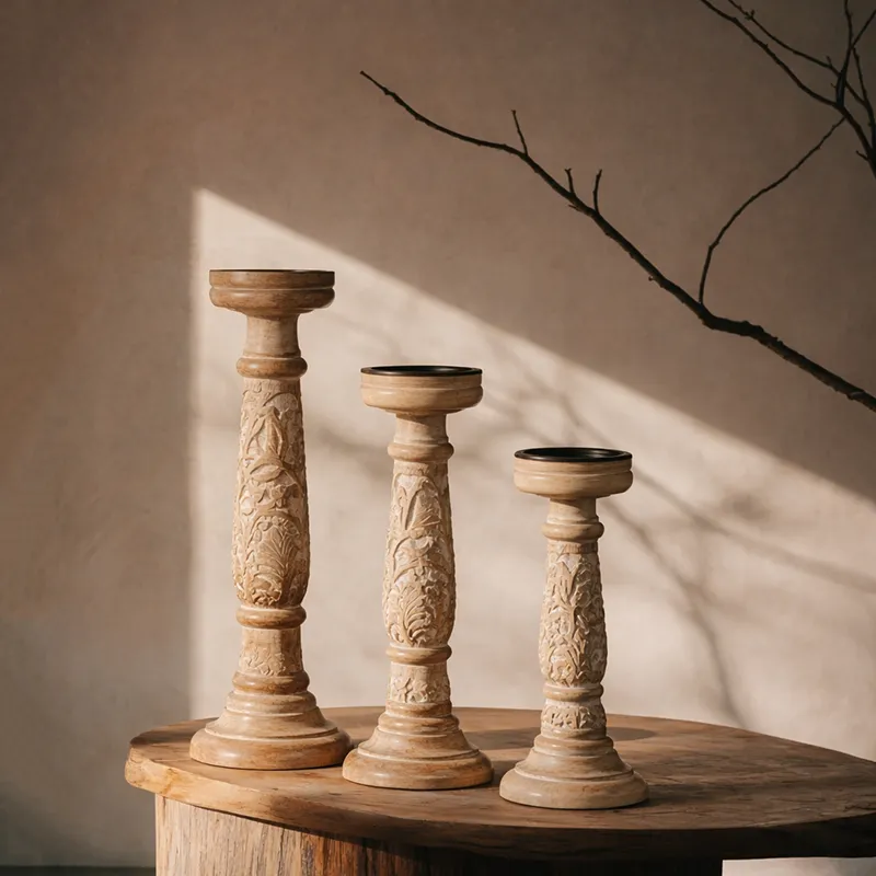 Handcrafted from solid mango wood, these candle holders bring the richness of natural textures and warm grain patterns into your space. Its clean silhouette and organic character make it a perfect fit for minimal, Scandinavian, or nature-inspired decors — creating a soft, tranquil glow wherever it’s placed.