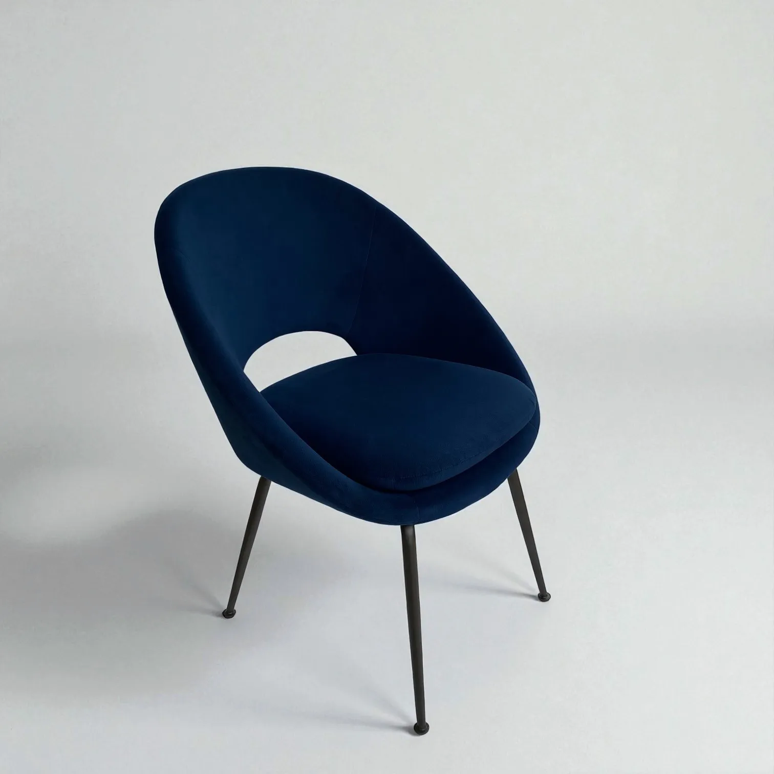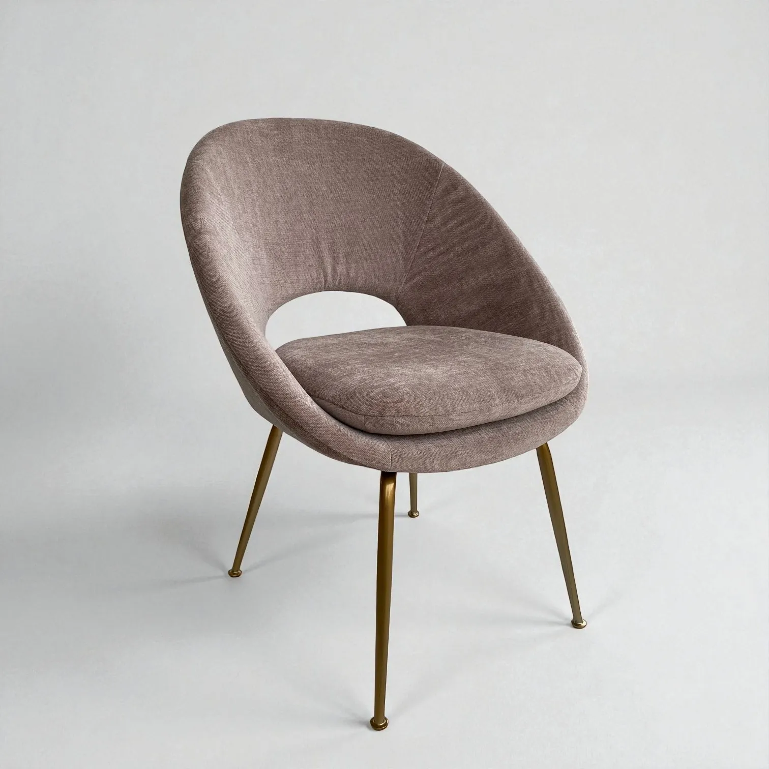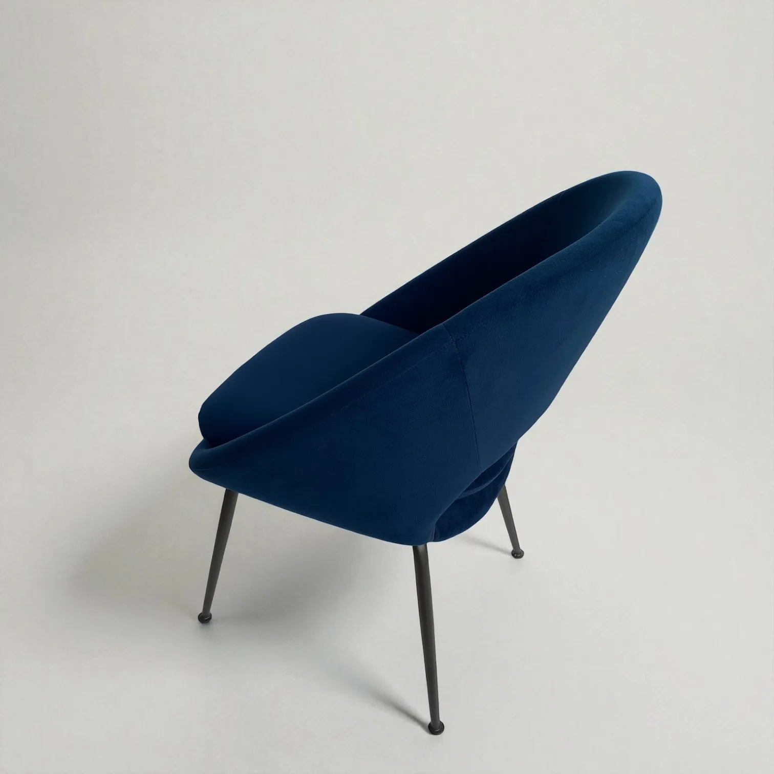 The Arvio Dining Chair showcases a graceful curved silhouette paired with a plush velvet cushion, delivering both style and comfort. Its ergonomic backrest supports long seating periods, while the metallic tapered legs add a refined modern touch. Perfect for contemporary dining rooms, elegant living spaces, or minimal dressing corners, Arvio elevates any interior with its soft texture and sculptural form.
