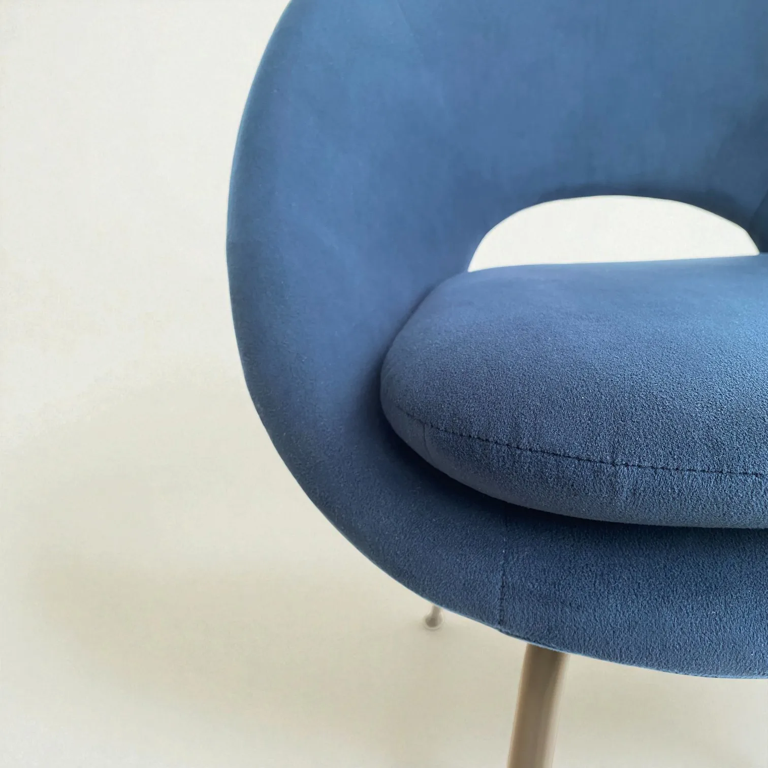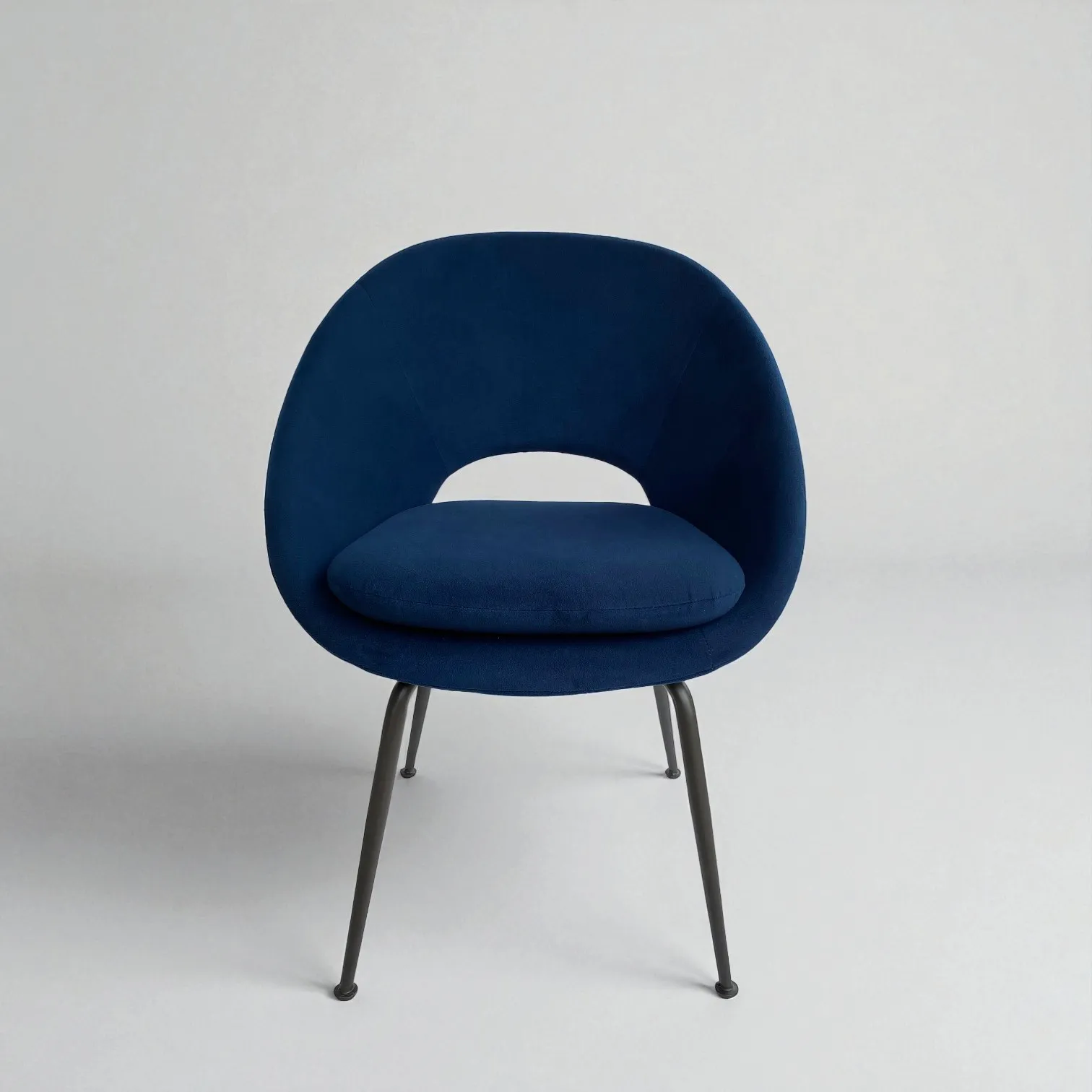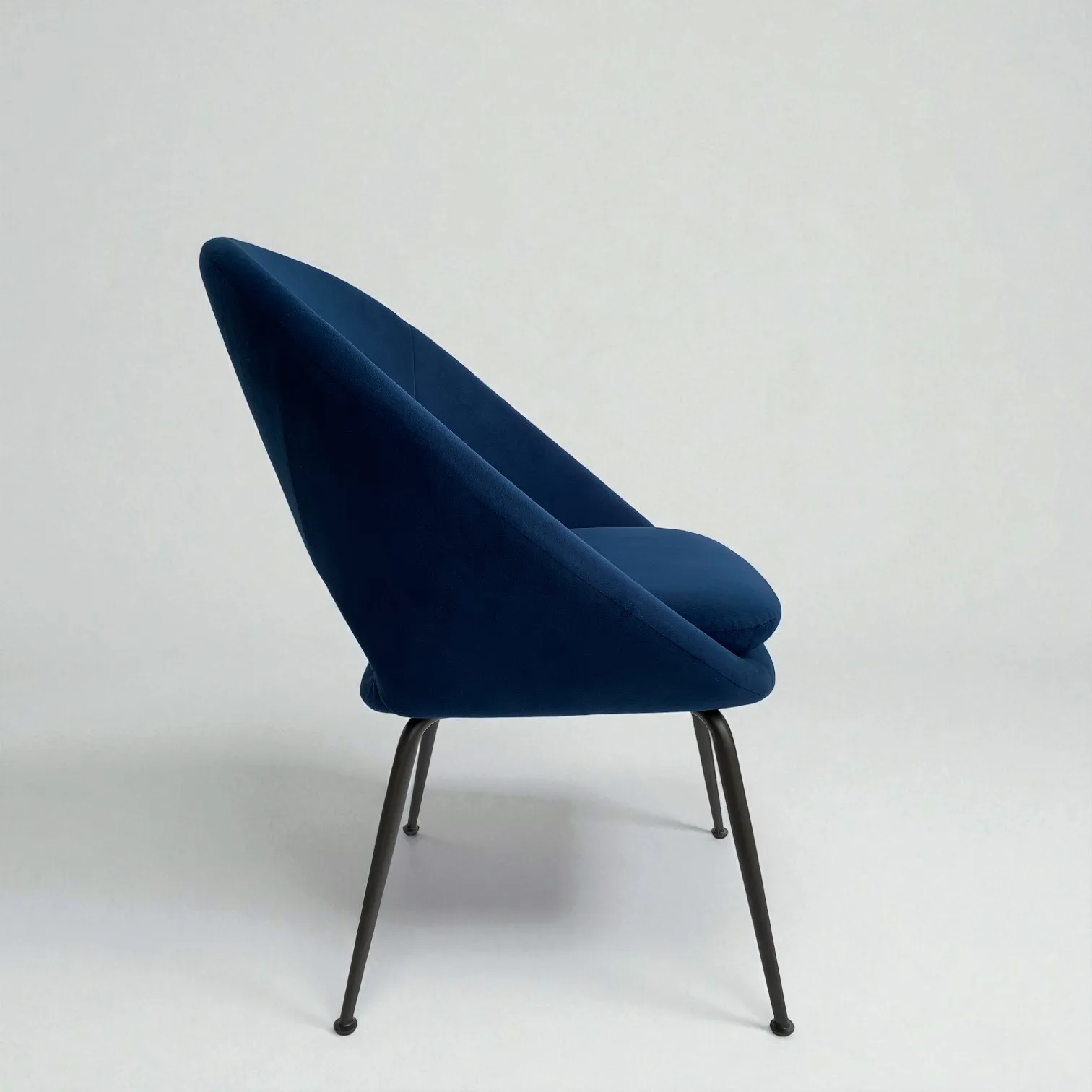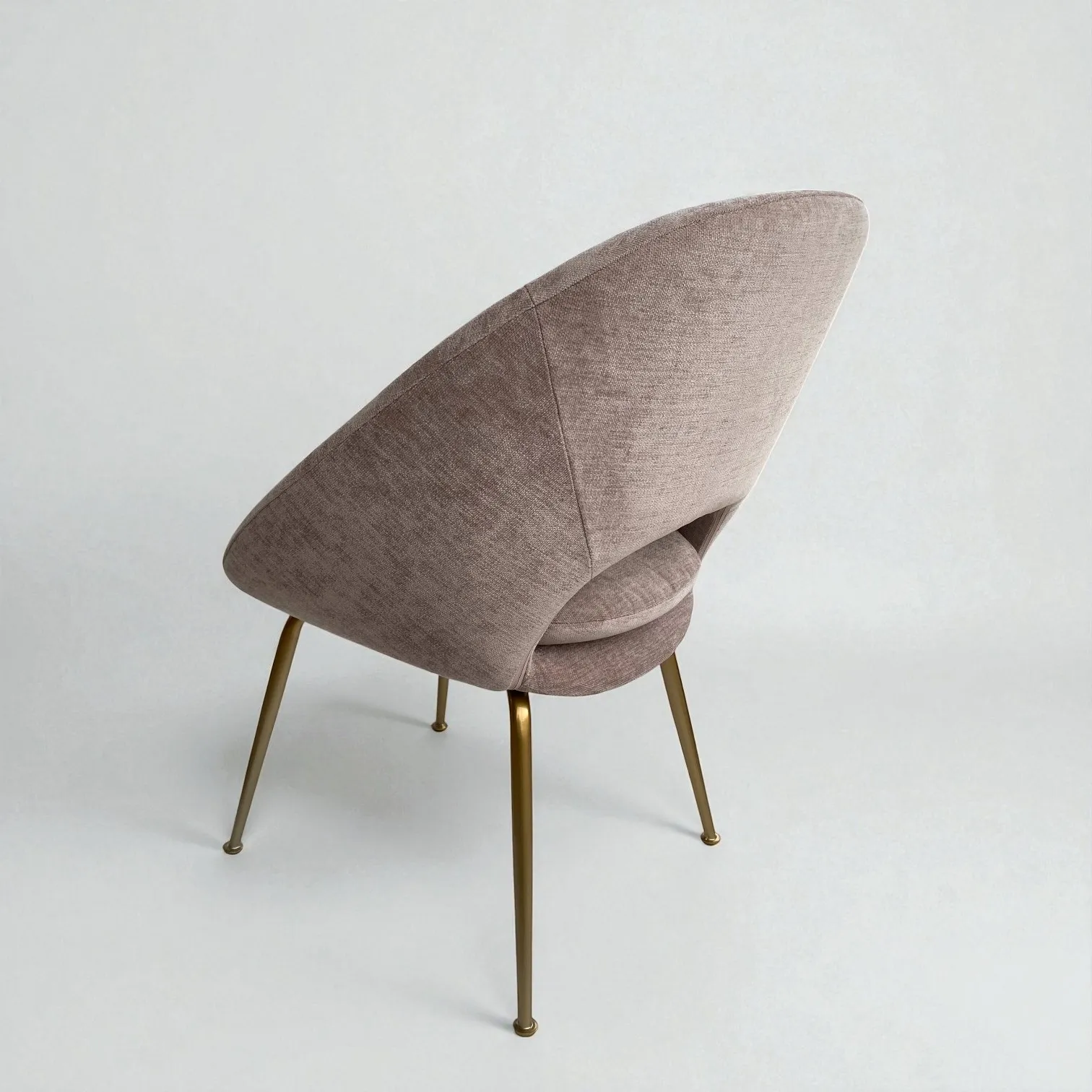 The Arvio Dining Chair showcases a graceful curved silhouette paired with a plush velvet cushion, delivering both style and comfort. Its ergonomic backrest supports long seating periods, while the metallic tapered legs add a refined modern touch. Perfect for contemporary dining rooms, elegant living spaces, or minimal dressing corners, Arvio elevates any interior with its soft texture and sculptural form.