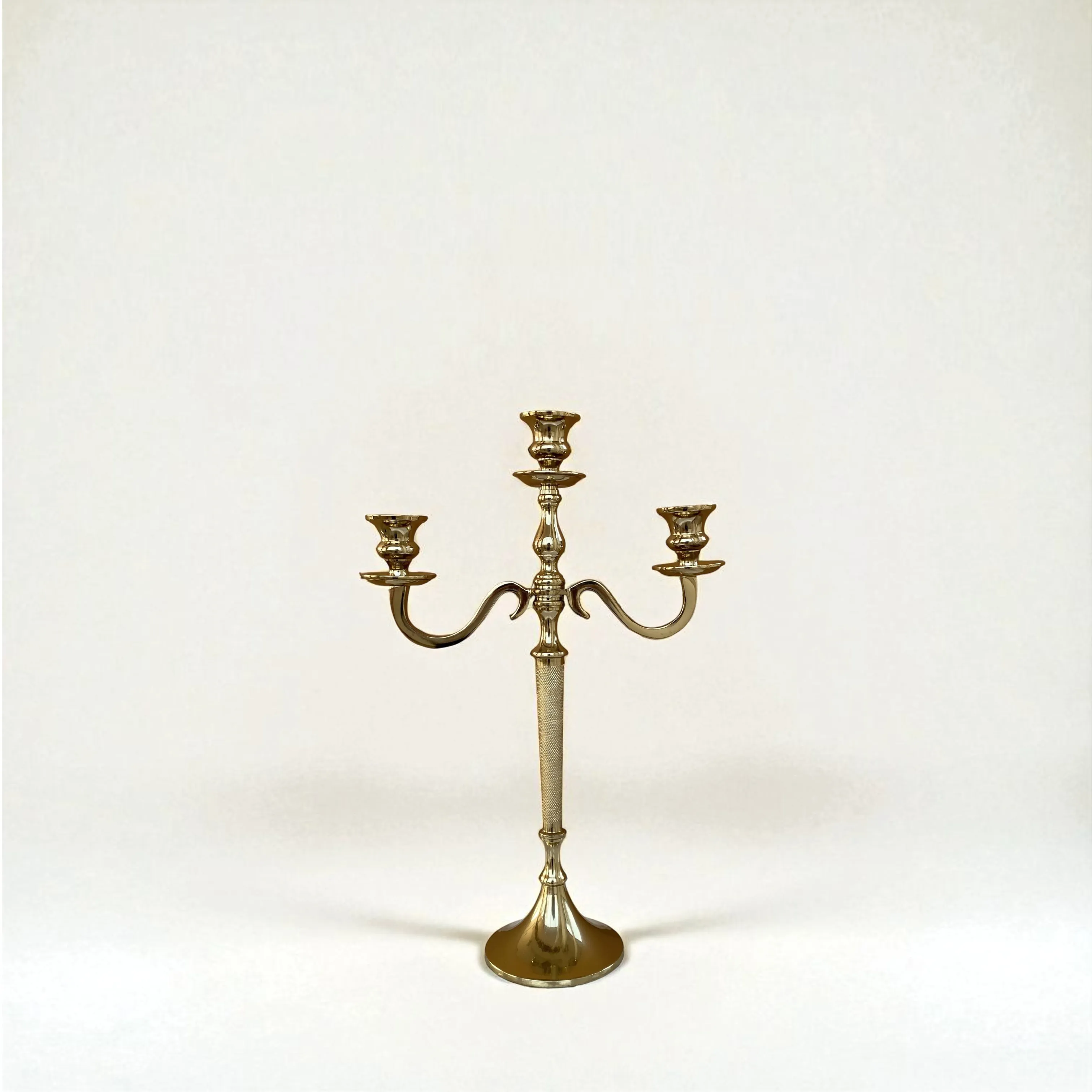 Its smooth, mirror-like surface beautifully amplifies candlelight, creating a warm and luxurious atmosphere. The symmetrical arms and sculpted base give the piece a strong, architectural presence—making it a true statement element for dining rooms, entry consoles, or sophisticated living spaces.