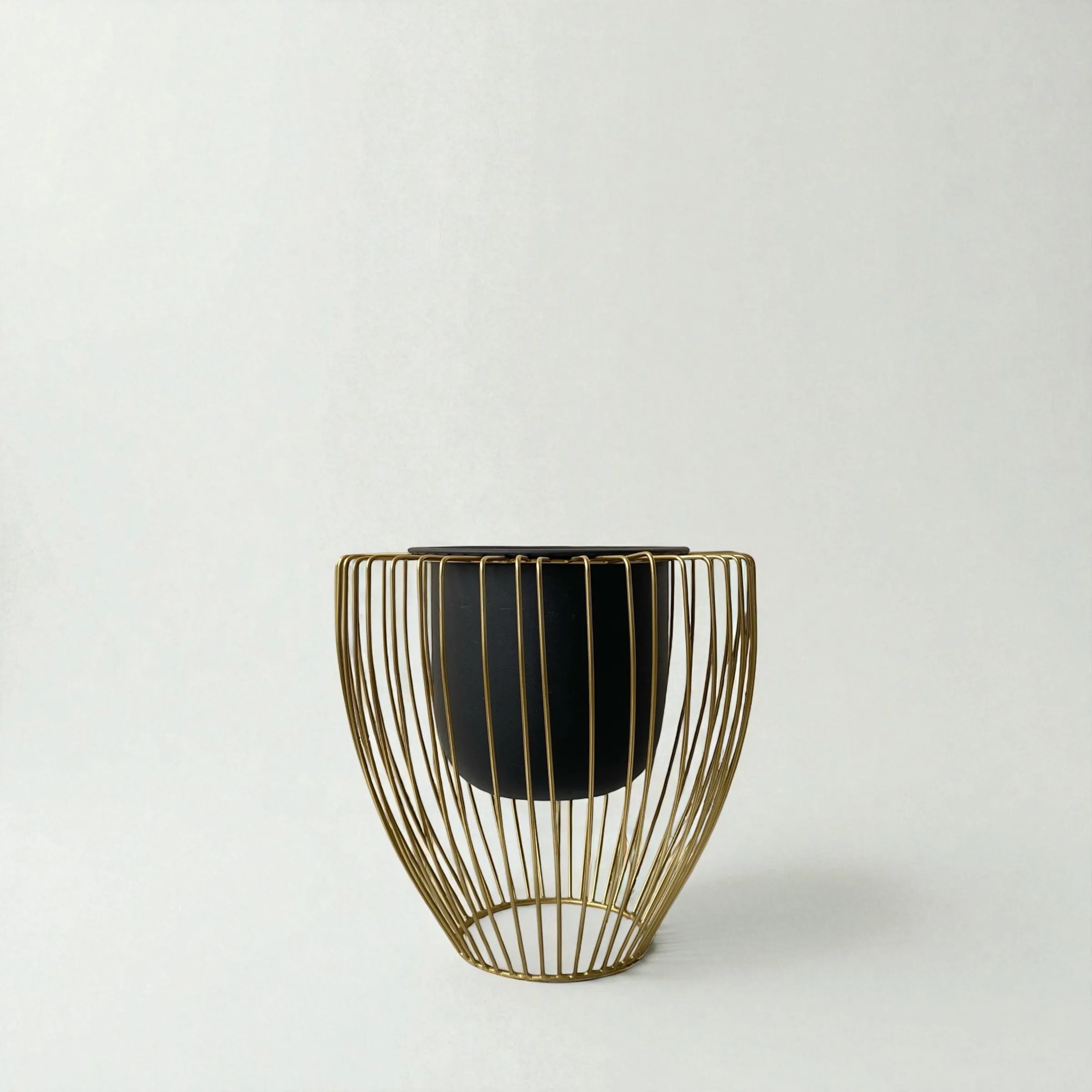 Modern handmade planter featuring a gold wire frame and matte black pot — a sophisticated balance of minimalism and luxury.