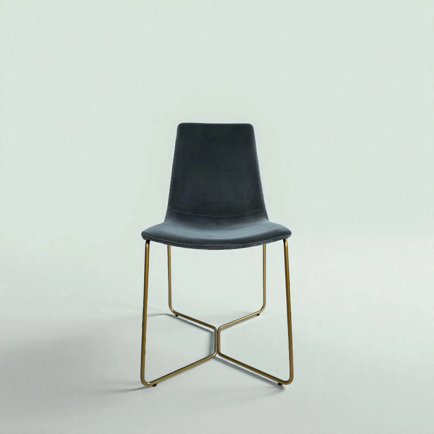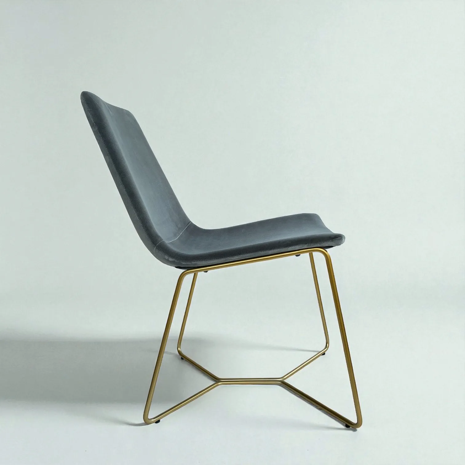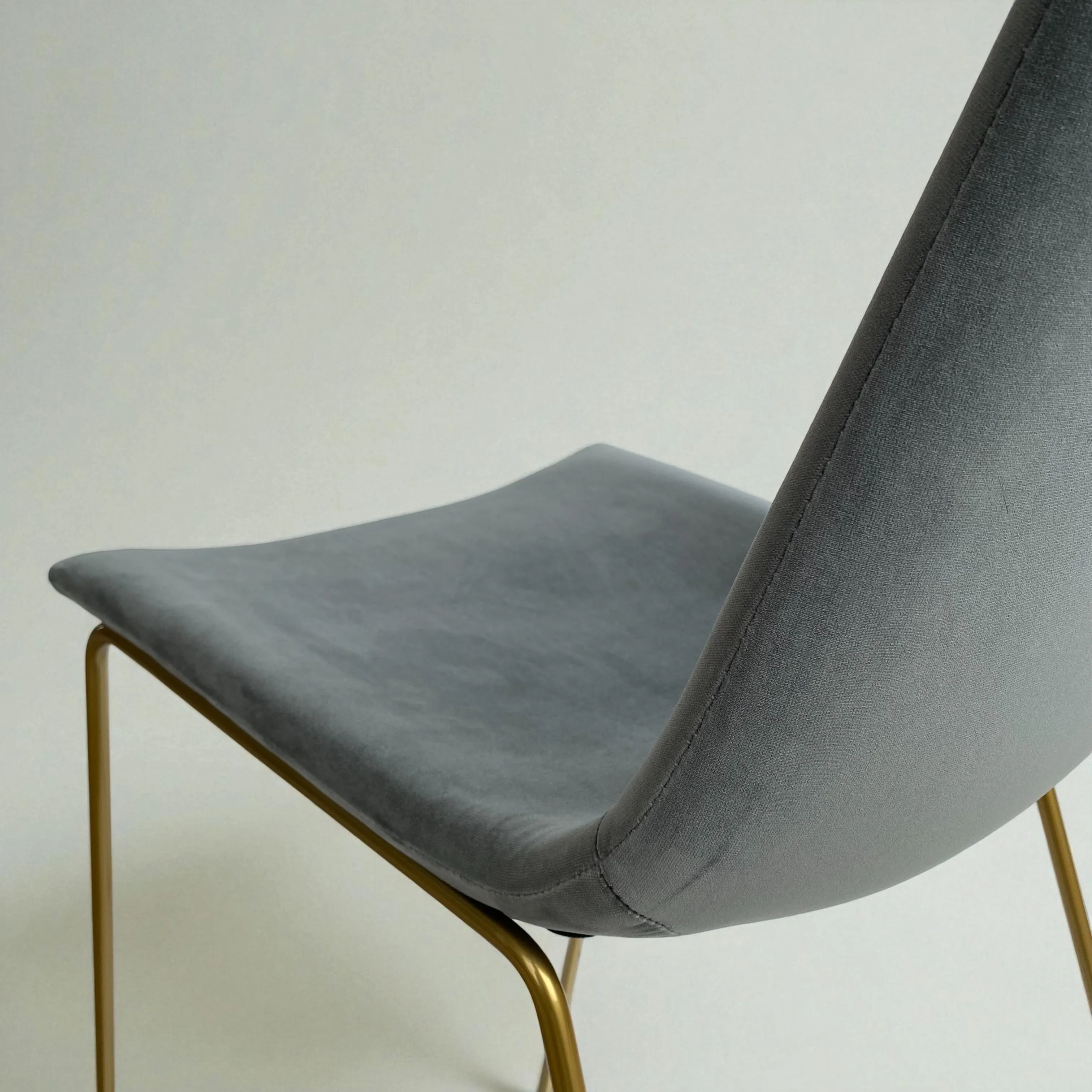 The Velmon Dining Chair blends elegance and comfort through its smooth grey seat and refined golden metal base. Designed for contemporary interiors, it perfectly complements minimalist dining tables or modern living areas. The matte gold legs offer both stability and visual warmth, while the gently contoured seat ensures long-lasting comfort and style.