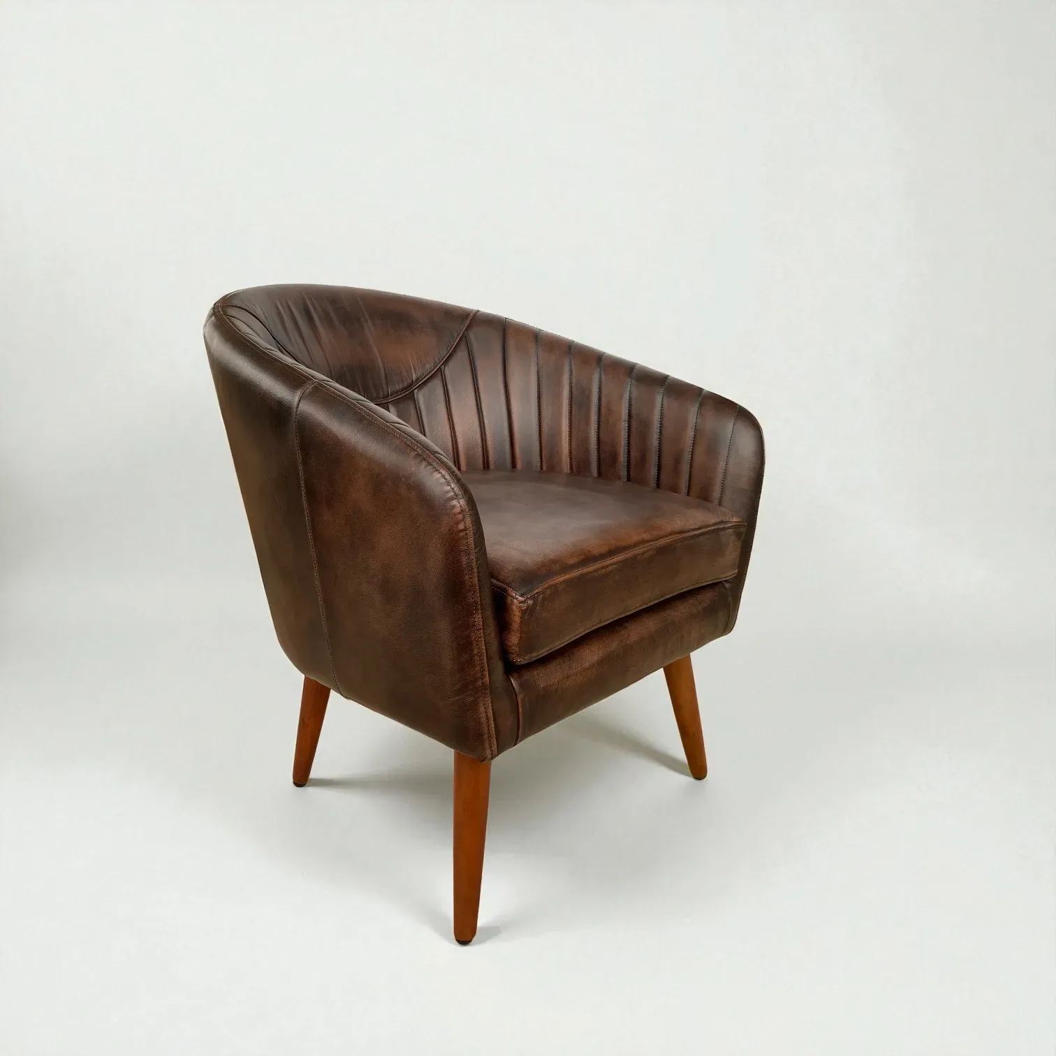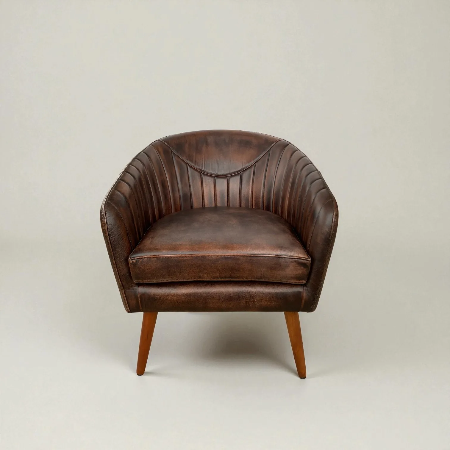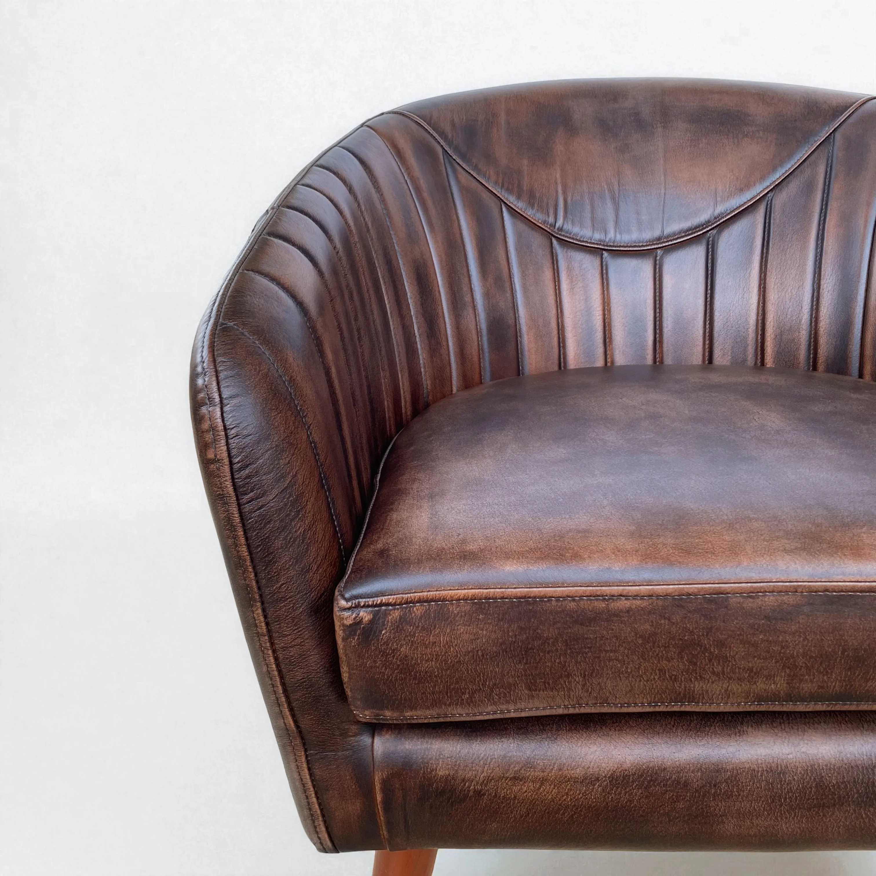 The Buffalo Leather Armchair combines vintage character with timeless comfort. Crafted from hand-finished buffalo leather and solid wood legs, it brings warmth, texture, and refined masculinity to any living space.
