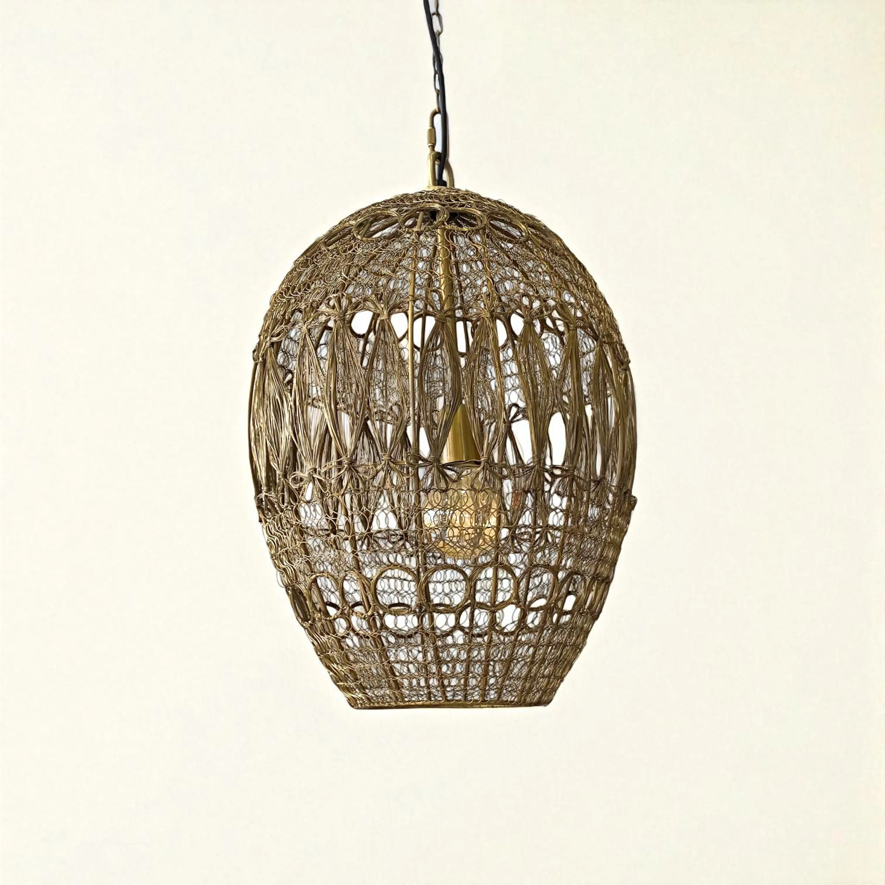 The “Orina” Brass Woven Pendant Light is a stunning handcrafted piece made from finely woven natural brass strands. Its intricate texture diffuses light beautifully, creating a soft, poetic ambiance filled with warmth and charm.