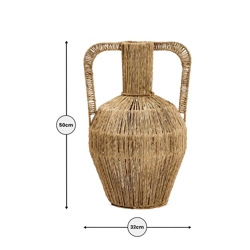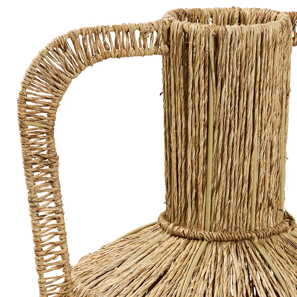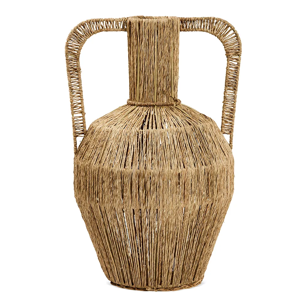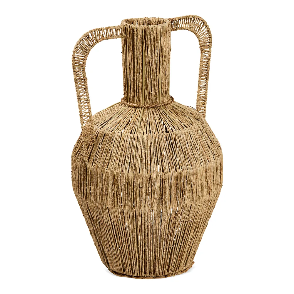 The Rohan Woven Vase is crafted from natural fibers, giving it an organic and warm texture. Its tall handles and sculptural silhouette make it a standout piece for consoles, entryways, or minimal spaces. This vase blends easily with boho, modern, or contemporary interiors, adding depth and character to any room.