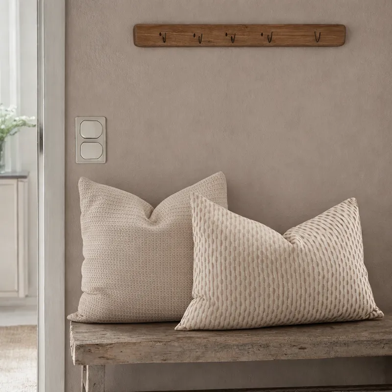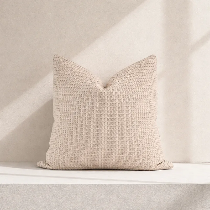Inspired by the Natural Texture movement in American home decor for 2025, the Selan cushion emphasizes material honesty, simplicity, and tactile quality. Its raised grid weave softly catches light, adding controlled visual depth and warmth.