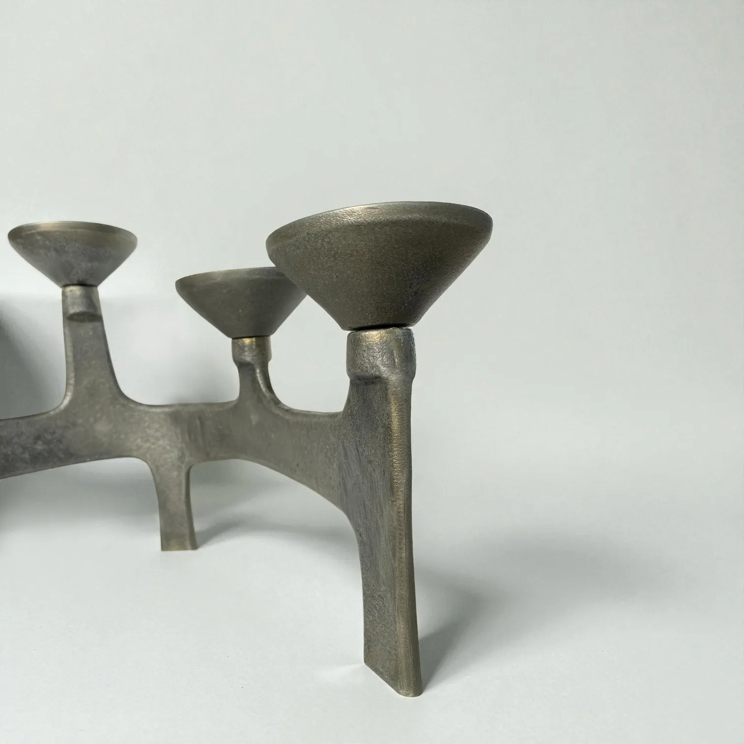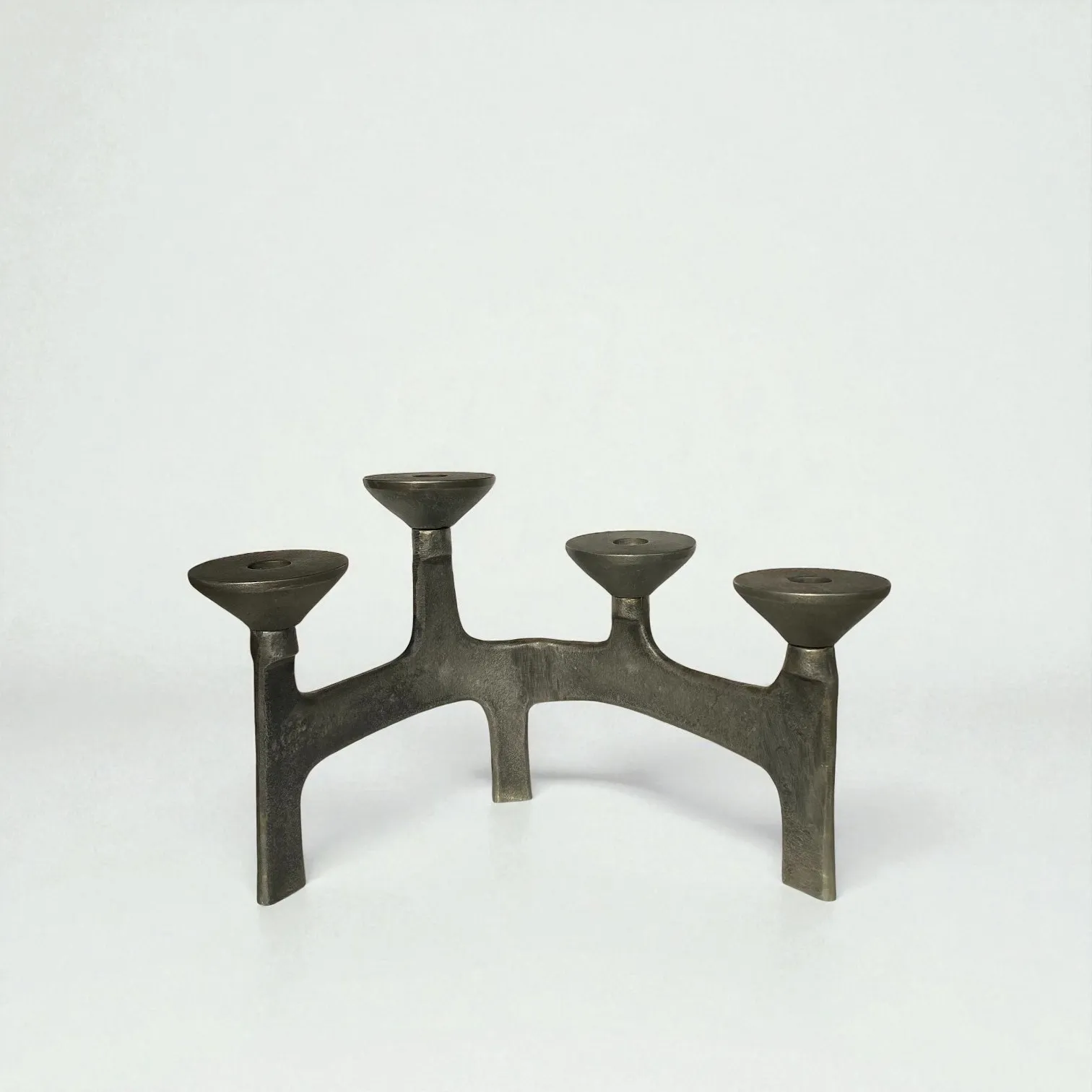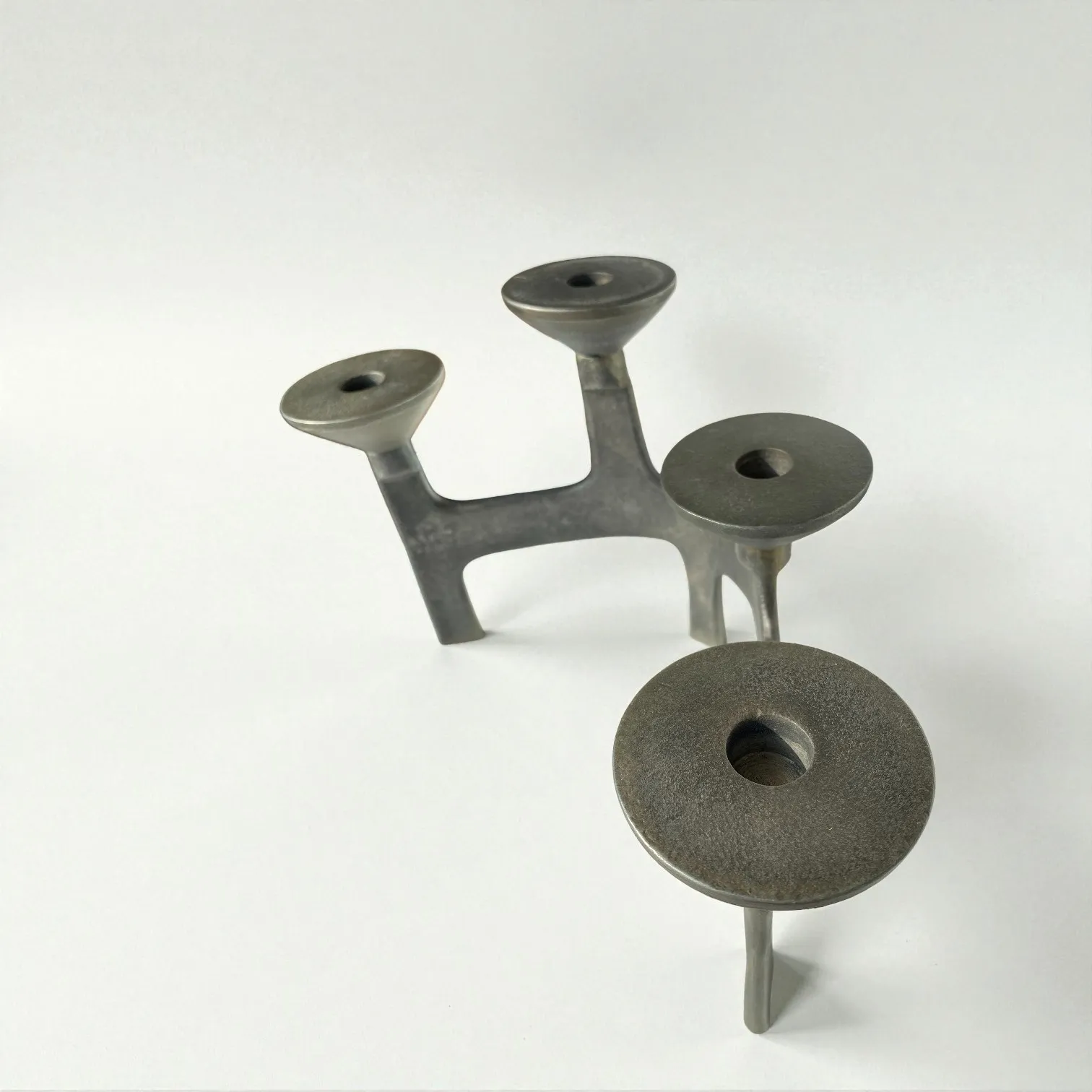 این شمعدان فلزی دستساز با طراحی هوشمندانهی دوطرفه، به شما این امکان را میدهد که آن را بسته به ترکیب فضای خود، از هر دو زاویه بچینید. هرکدام از سرشمعها دارای اتصال پیچی هستند و بهراحتی جدا میشوند، تا بسته به نیاز و سلیقه، تعداد یا حالت چینش شمعها را تغییر دهید. این ویژگیها، آن را به یک اکسسوری متفاوت و منعطف برای میزهای غذاخوری، شلفها یا فضاهای نمایشی تبدیل میکند. انتخابی جسورانه برای کسانی که به طراحیهای معمارانه و عملکردگرایانه علاقهمندند.