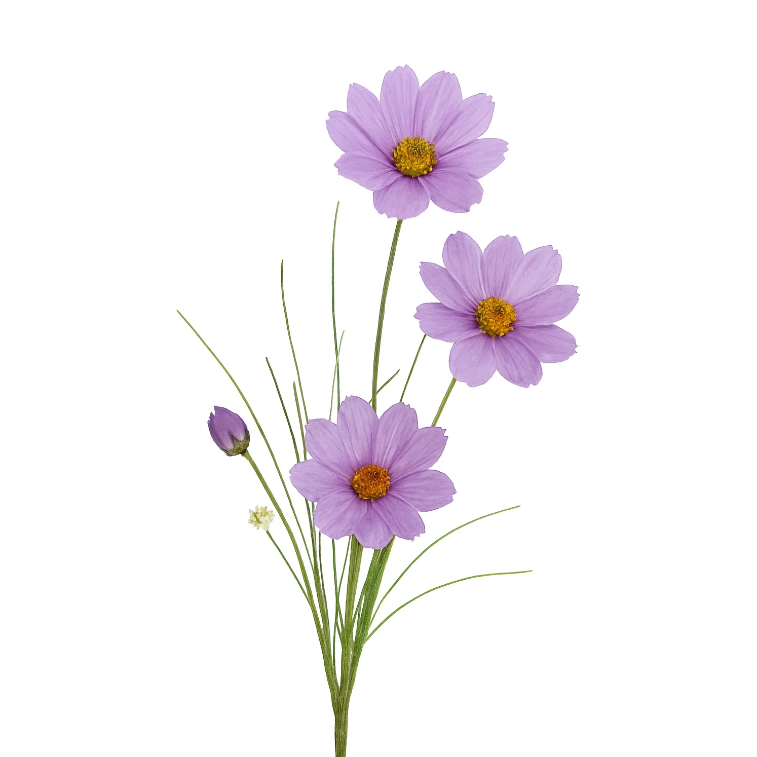 شاخه گل کاسموس Lilac با سه گل باز و چند غنچه طبیعیساز، انتخابی ایدهآل برای دکوراسیونهای مینیمال، مدرن یا رمانتیک است. با بافتی شبیه گل واقعی و رنگ بنفش آرام، این شاخه میتواند در گلدانهای بلند، چیدمانهای بوهمین یا ترکیب با سایر شاخههای مصنوعی، جلوهای چشمنواز خلق کند. وزن سبک و فرم انعطافپذیر آن باعث میشود بهراحتی در هر فضایی قرار گیرد و جلوهای طبیعی و ماندگار ایجاد نماید.