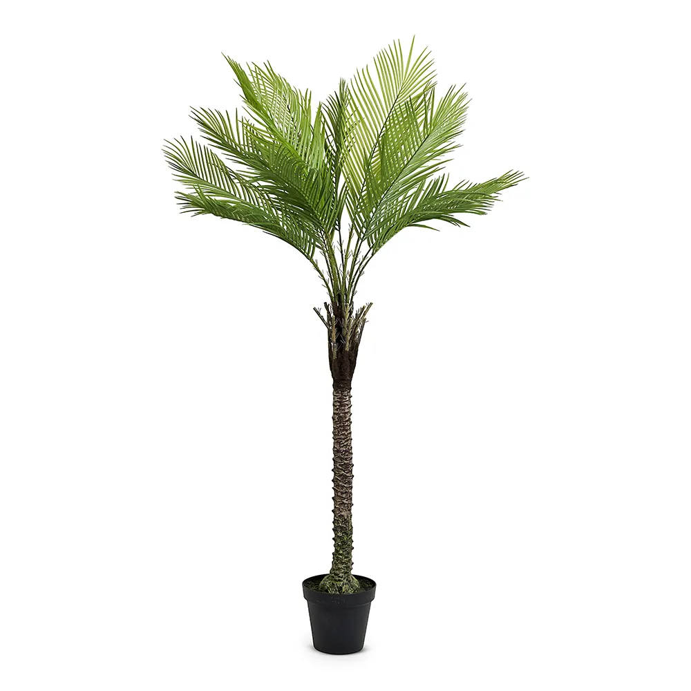 نخل مصنوعی مدل Palora با برگهای سرسبز و تنهای طبیعینما طراحی شده تا حس یک نخل واقعی را در محیط ایجاد کند—بدون نیاز به رسیدگی گیاه زنده. ارتفاع چشمگیر آن این محصول را به نقطه کانونی مناسب برای نشیمنهای بزرگ، لابیها، سالنهای اداری، فضاهای تجاری و محیطهای مدرن تبدیل میکند.