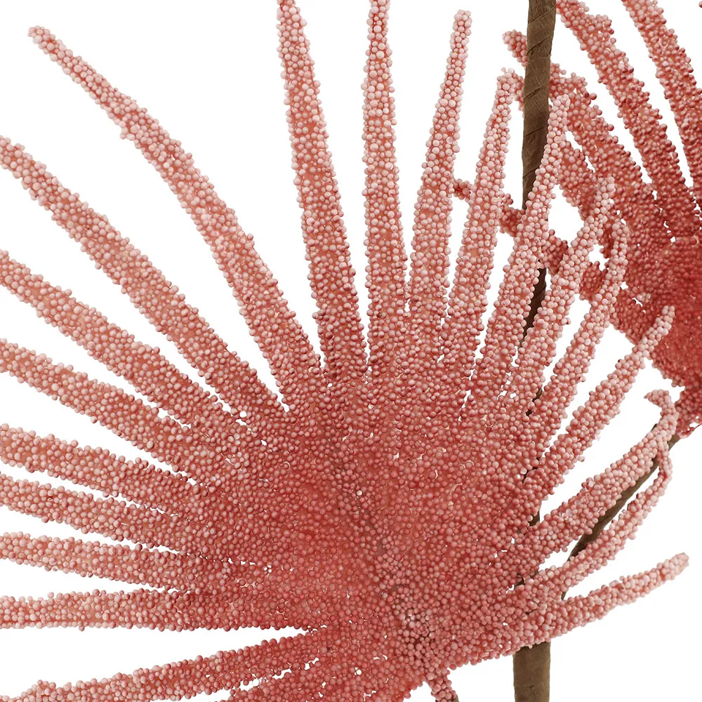 شاخه گل فَن صورتی با فرم متفاوت و ساختار دانهدانهاش، جلوهای معاصر و جذاب به فضای شما میبخشد. سه گل فَن باز شده در طراحی این شاخه، حالت پُر و چشمگیر ایجاد میکنند و بهراحتی در گلدانهای بلند یا ترکیب با شاخههای سادهتر قابل استفاده است. رنگ صورتی چرک و بافت ظریف این مدل، انتخابی عالی برای دکوراسیون لوکس، مینیمال و فضاهایی با رنگهای خنثی محسوب میشود.