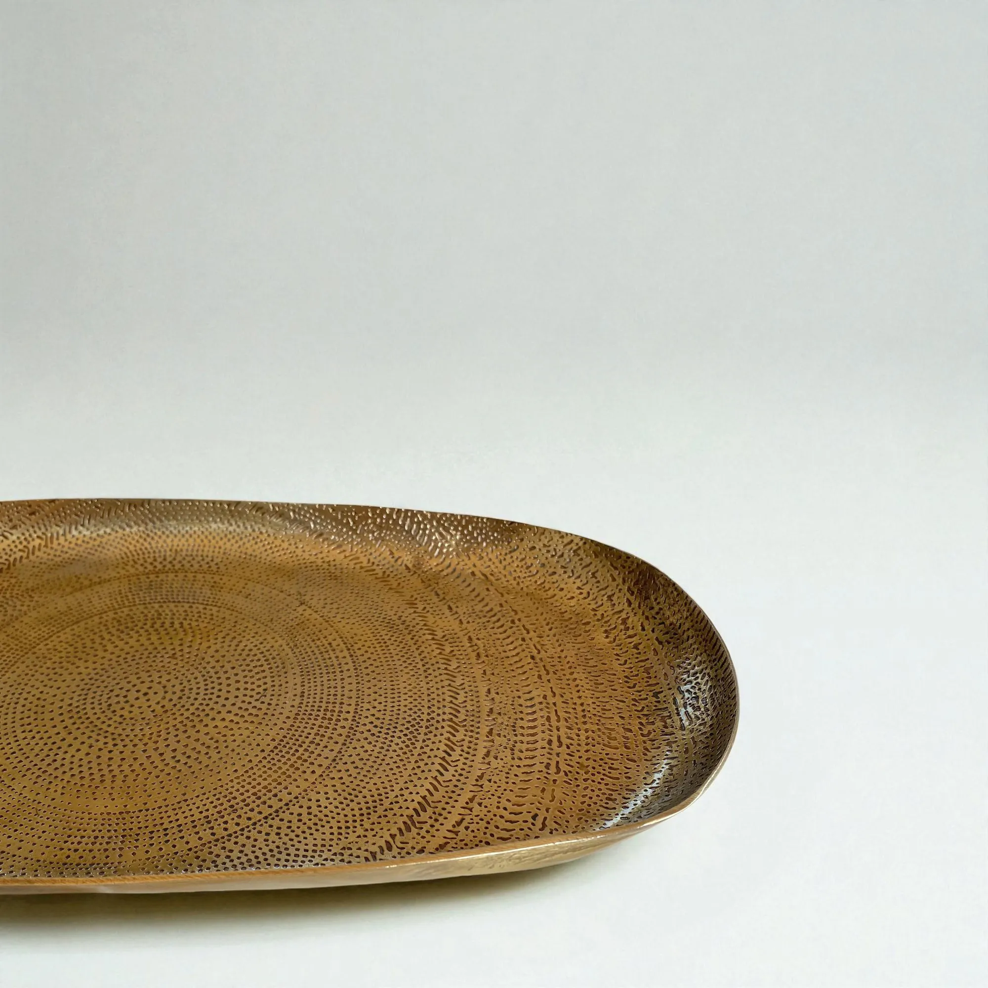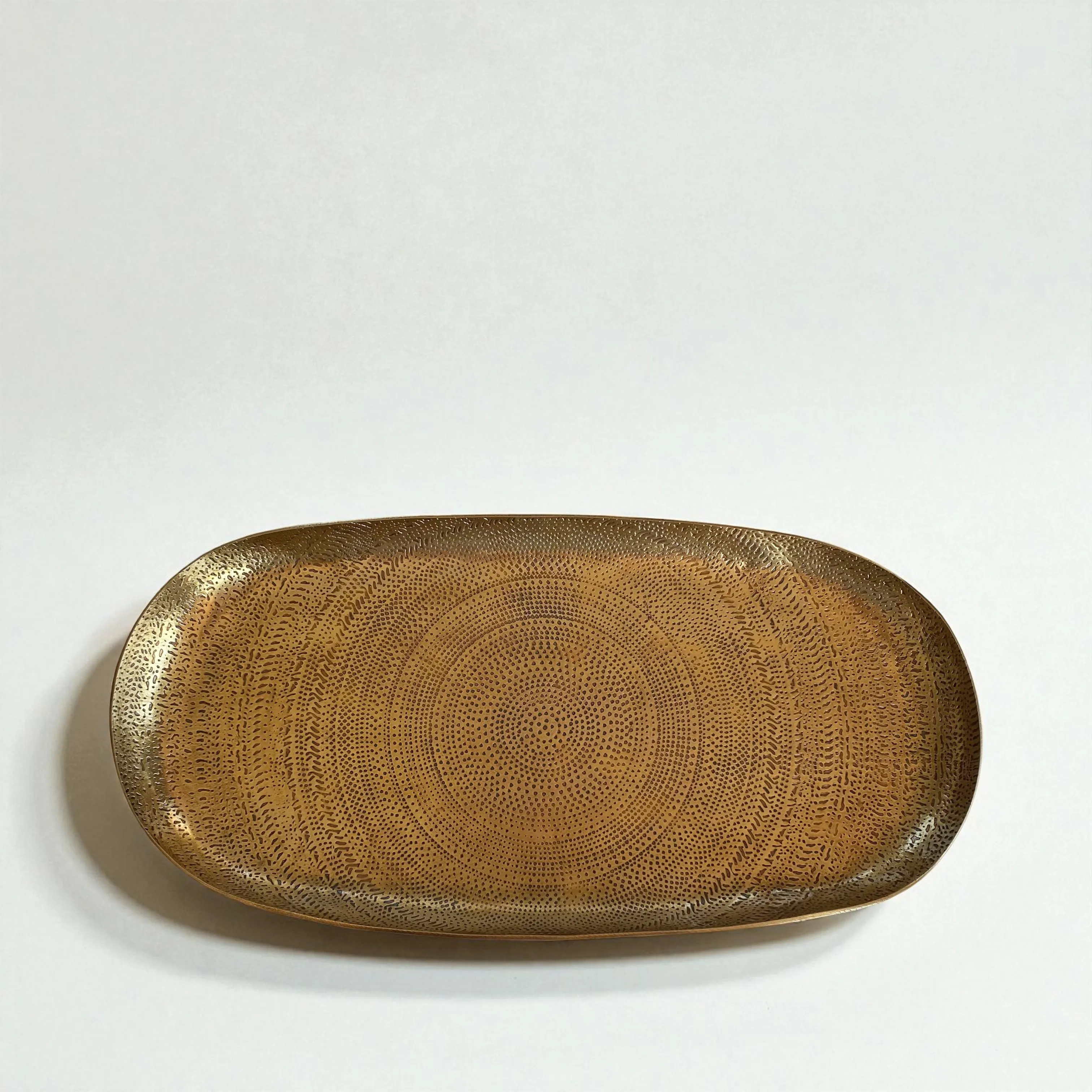 سینی برنجی Selvara با طراحی بیضی و پرداخت طلایی کهنهکاریشده، ترکیبی از سادگی مینیمال و جلوهای مجسمهوار را ارائه میدهد. بافت ظریف و دستساز آن، کیفیتی متمایز ایجاد کرده و این محصول را به یک نقطه تأکید ظریف در دکور مدرن، کانتمپوری و لوکس تبدیل میکند.
