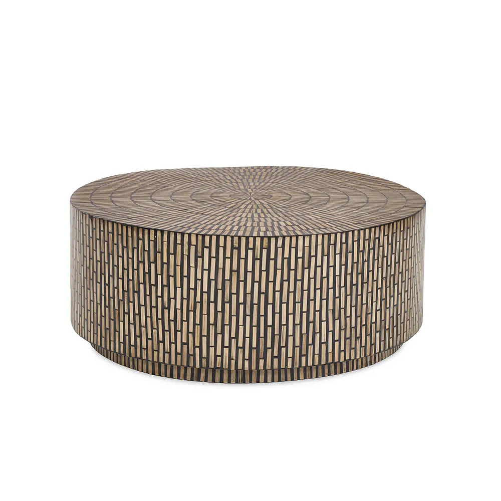 سطح میز با الگوی دایرهای و کنارهها با بافت خطی طراحی شده تا جلوهای چشمگیر، منظم و لوکس ایجاد کند. این میز نهتنها نقطه کانونی زیبایی در نشیمن است، بلکه با هر نوع مبل و رنگساز هماهنگ میشود و فضای خانه را گرمتر و جذابتر میکند.